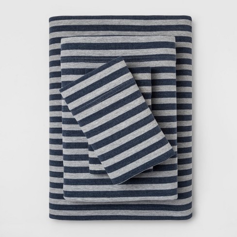 Twin Xl Striped Cozy Brushed Jersey Sheet Set Navy Gray